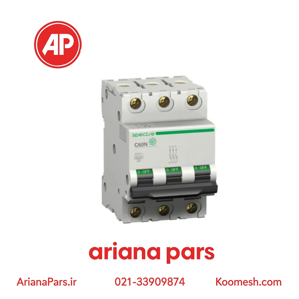 کلید مینیاتوری یا MCB از تجهیزات الکتریکی است که مدار را در برابر اتصال کوتاه و اضافه بار به صورت حرارتی-مغناطیسی محافظت میکند. کلید مینیاتوری سه پل اسپکتر سری M9 با کد فنی se-24352 در مدارهای AC استفاده می‌شود. این کلید با منحنی تریپ C بوده و تا جریان نامی 25 آمپر کار می‌کند. طبق استاندارد EN/IEC 60898، در ولتاژ 440 ولت AC قدرت قطع این کلید مینیاتوری 6 کیلو آمپر است. این تجهیز مدارها را در برابر جریان اتصال کوتاه و اضافه بار محافظت می‌کند. در صورت ایجاد اتصال کوتاه شاخص OFF وضعیت قطع بودن کلید مینیاتوری را نشان می‌دهد. کلید مینیاتوری اسپکتر دارای دوام الکتریکی تا 10000 سیکل و دوام مکانیکی تا 20000 سیکل است. ولتاژ عایق نامی Ui آن، 500 ولت AC است. این محصول به صورت گیره‌ای روی DIN ریل نصب می‌شود. 6 عدد حفره 9 میلی متری برای اتصال سیم به کلید میناتوری در نظر گرفته شده است. رنگ بدنه کلید خاکستری بوده و با ابعاد 73*54*81 میلی متر و وزن 360 گرم تولید و عرضه می‌شود. بر اساس استاندارد IEC 60529، درجه حفاظت این کلید IP20 و پس از قرار دادن در تابلو IP40 است. این محصول را می‌توان در رنج دمای 40- تا 70 درجه سانتی گراد نگهداری و در رنج دمای 25- تا 60 درجه سانتی گراد راه اندازی و استفاده کرد.